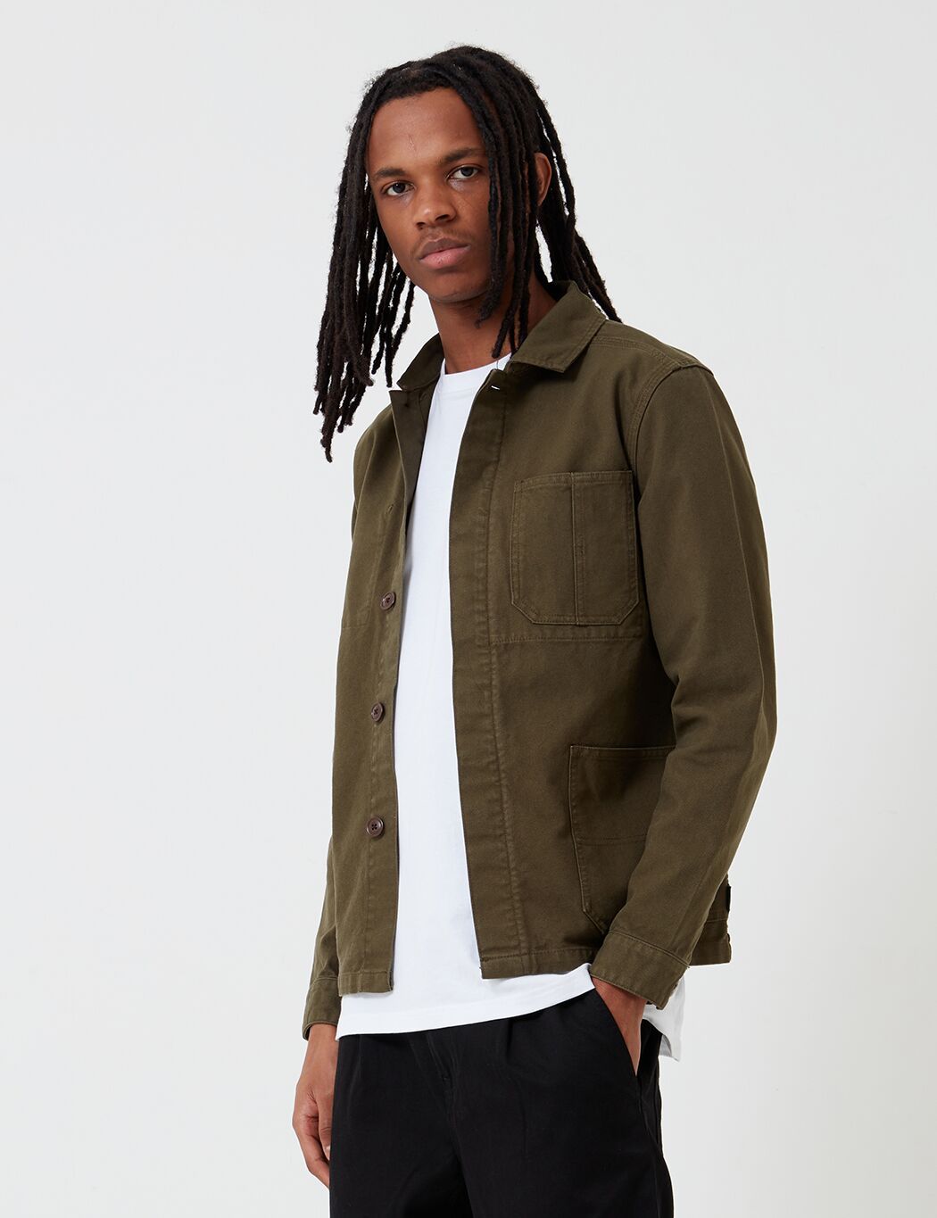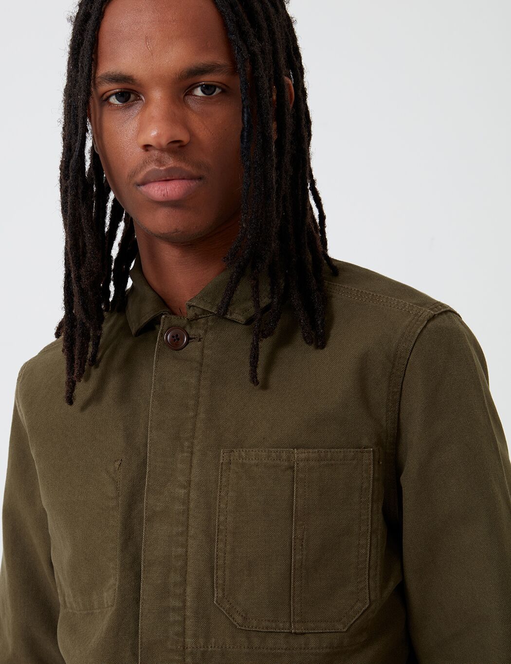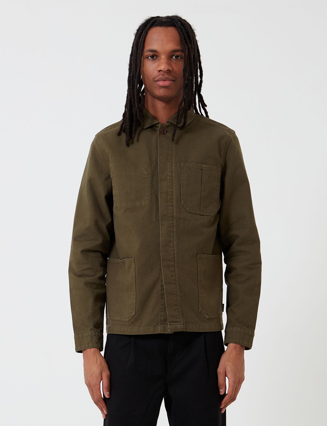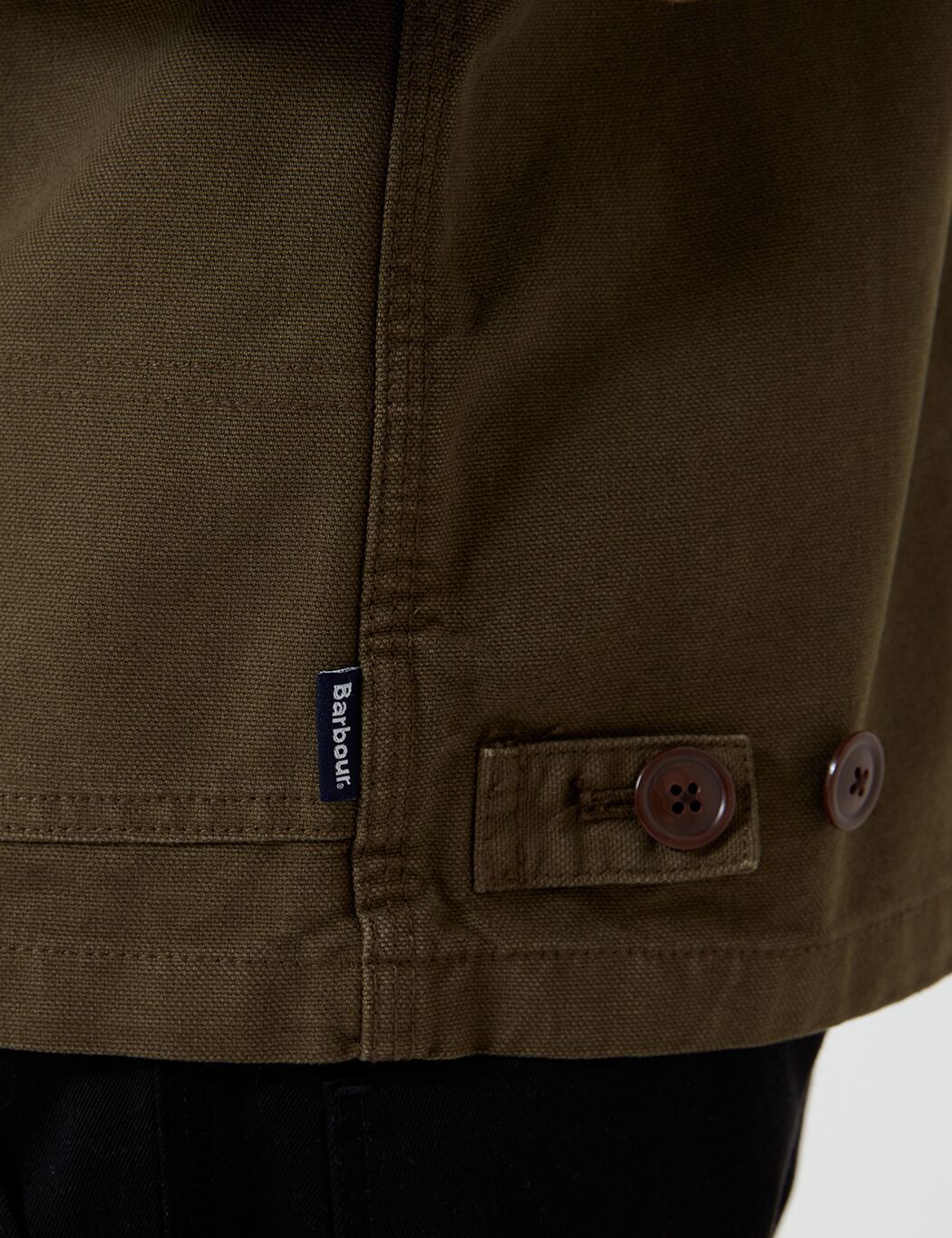 Duncansea Barbour heavy cotton twill overshirt featuring heritage workwear pocket detailing on chest with button detailing at waist and hidden button placket fastening, minimal Barbour branding.