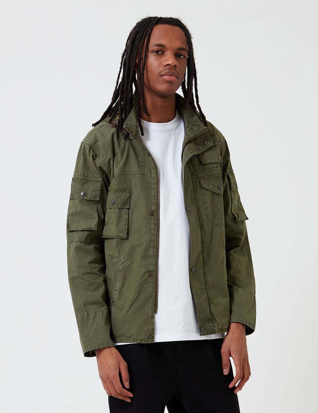 The Barbour x Engineered Garments Washed Cowen Casual Jacket in olive green from the Barbour outerwear Spring/Summer 2020 collection.