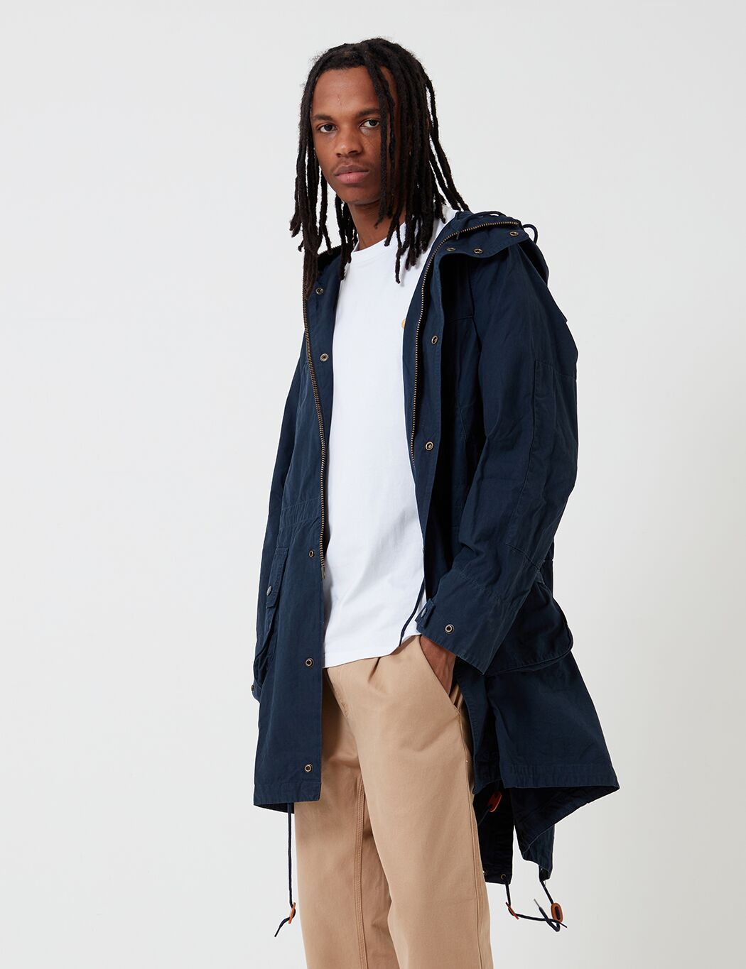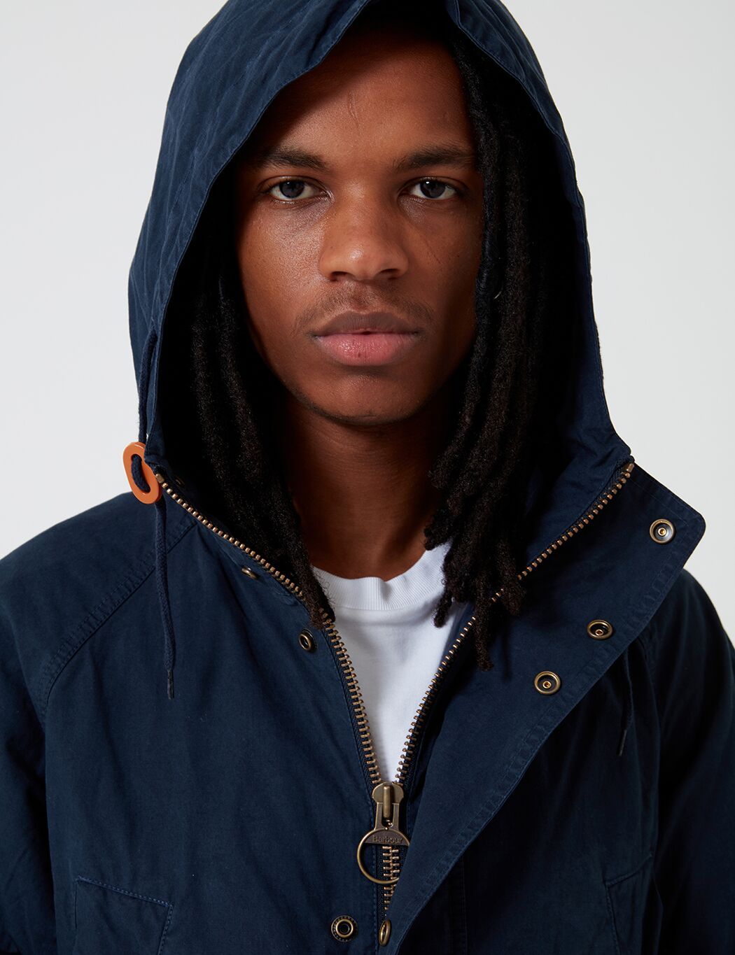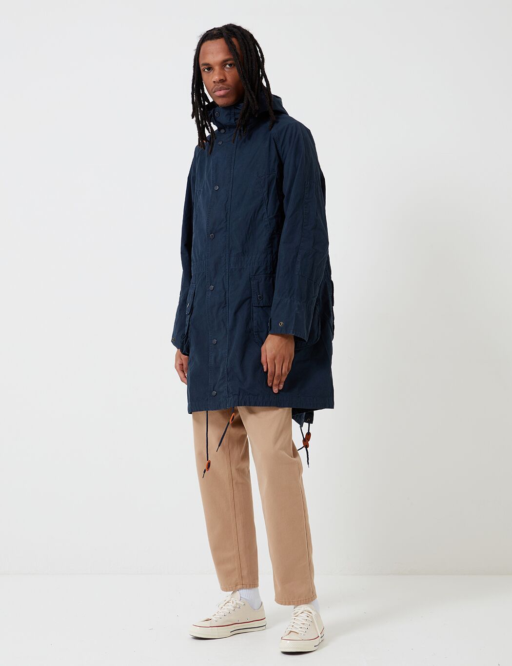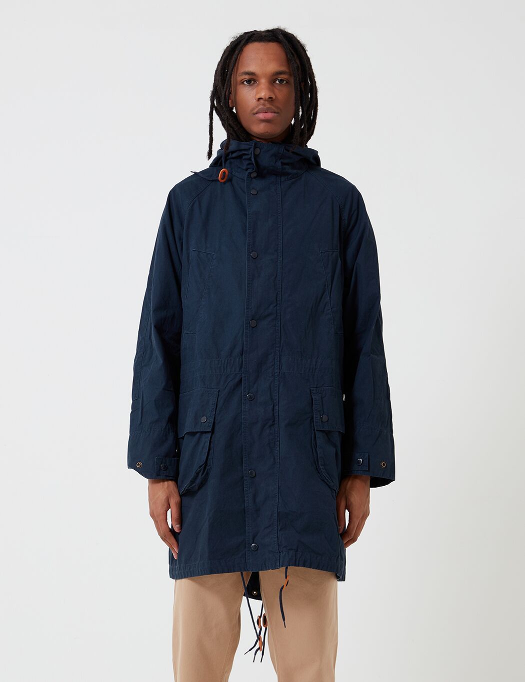 The Barbour x Engineered Garments Washed Highland Parka in navy blue from the Barbour outerwear Spring/Summer 2020 collection.