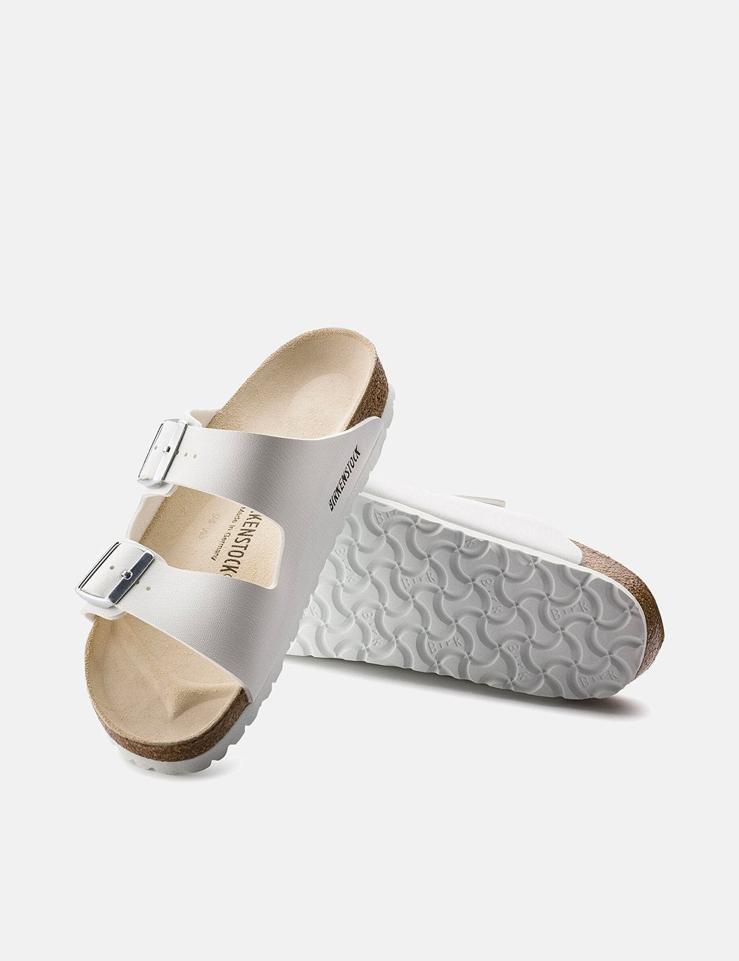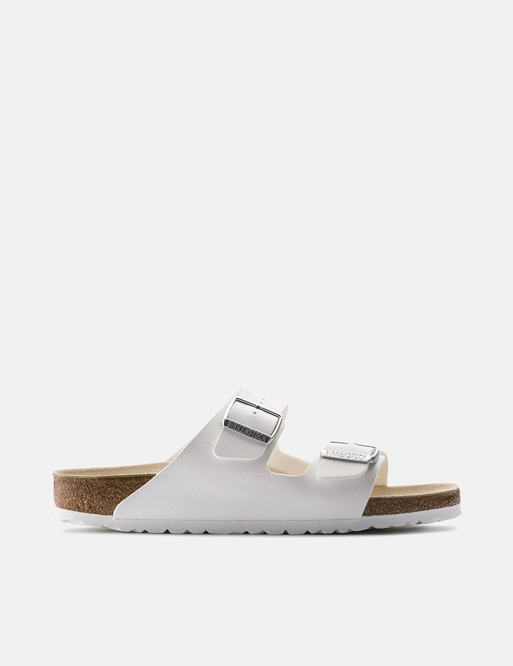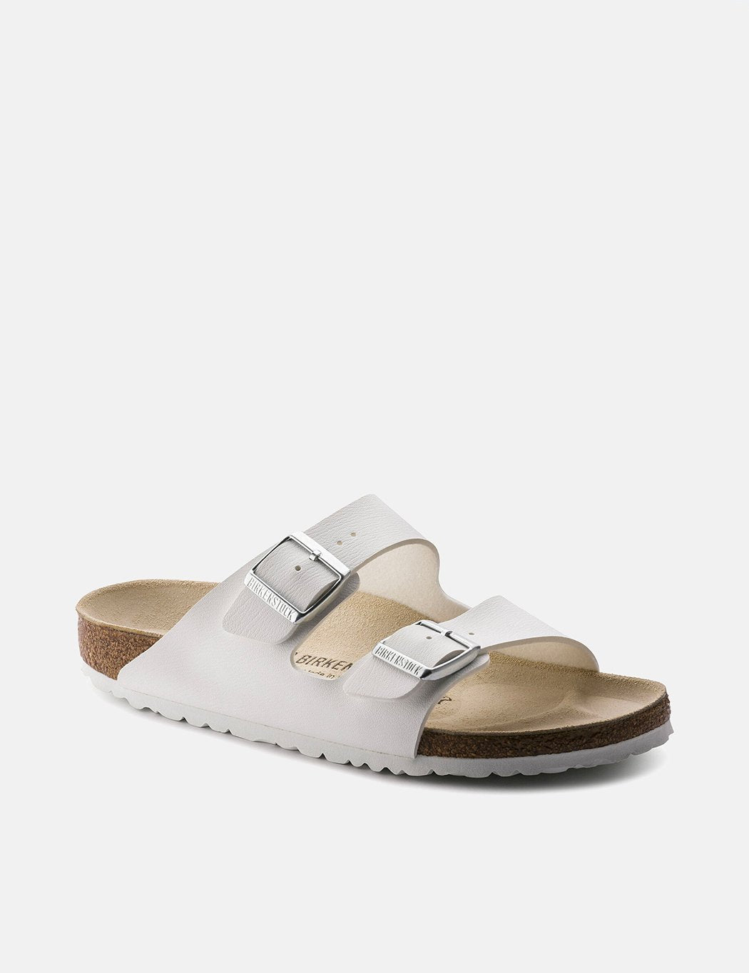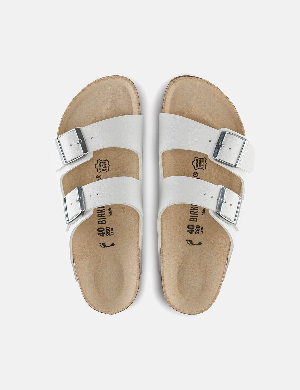 The Birkenstock Arizona Leather sandals in white from the Birkenstock Classic collection.