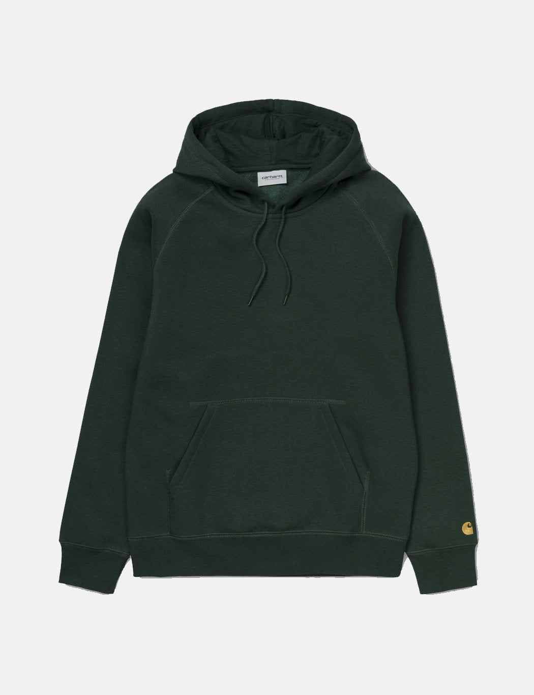 The Carhartt Chase hooded sweatshirt in Bottle Green from the Carhartt chase sweatshirts core collection.