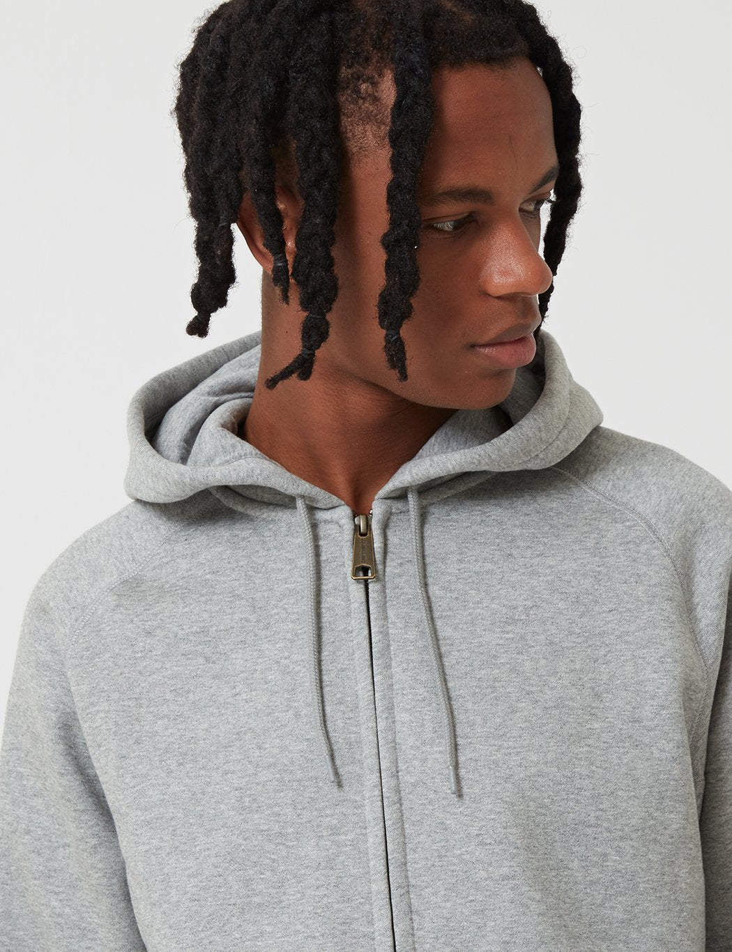 The Carhartt Chase hooded sweatshirt zip jacket in Grey Heather with Gold embroidery from the Carhartt Chase sweatshirts collection.