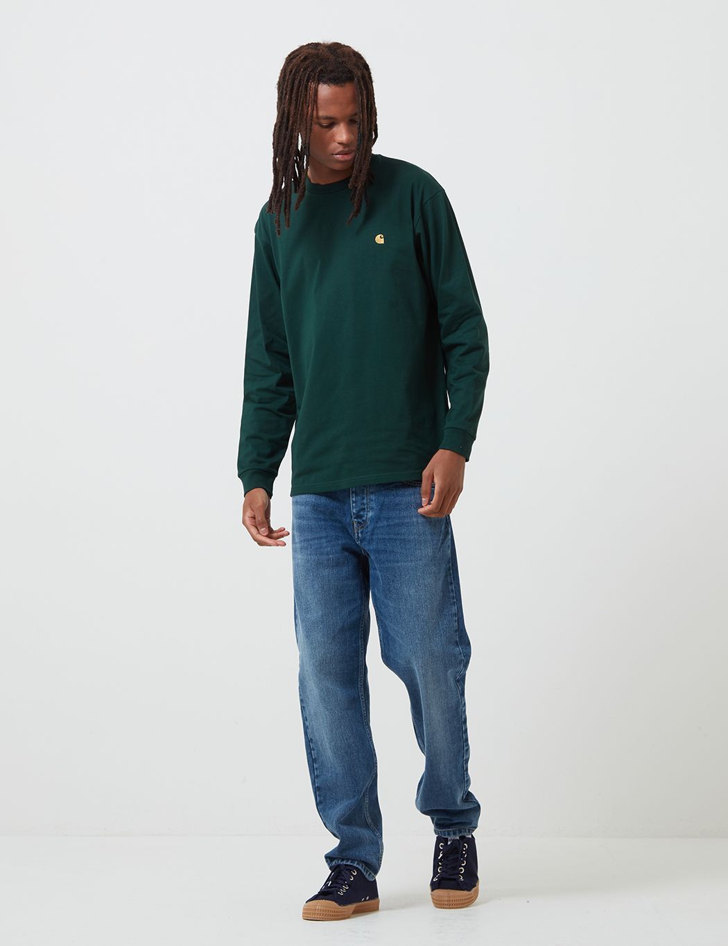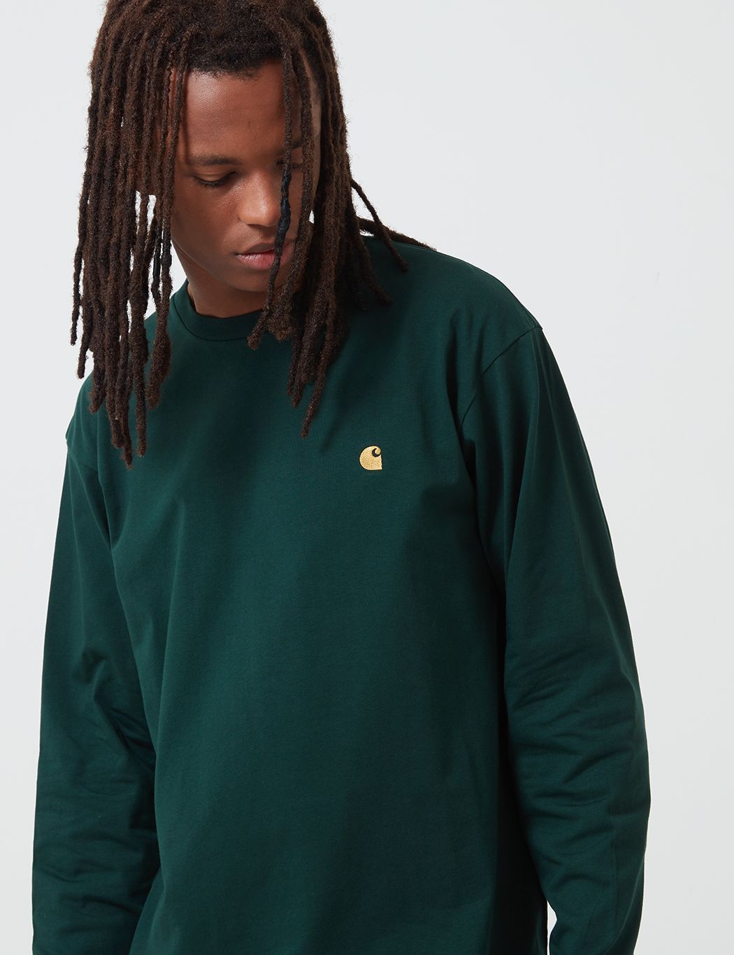 Carhartt-WIP Chase Long Sleeve T-Shirt - Bottle Green/Gold